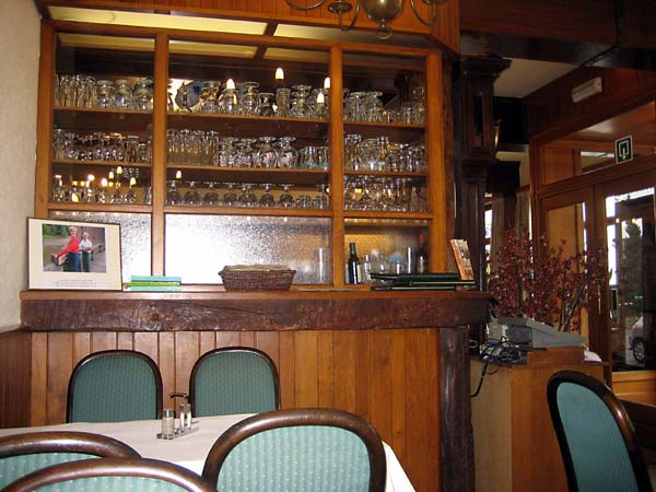 There's a big room with lots of dining space for folks next to the small bar of the cafe. Walking uphill from the tiny little train station it was lightly drizzling, so I grabbed a table in the side room right next to the large fireplace.