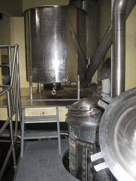 The Brewery has 3 levels, with the HLT and Boiler and the Coolship up on the top level.