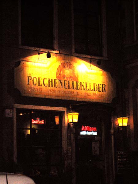 On a side street, just off the Rux des Bouchers is the Delirium Cafe. A big, half nightclubby type of place with a very young crowd and the current Guiness Book of Records holder for the most beers for sale in the world. (Over 2000 at last count) A bit on the pricey side, but this is really a one stop shop for just about any beer you could imagine wanting from Belgium. And while you're here, you can look across the street at Jeanneke Pis, Manneken's sister.