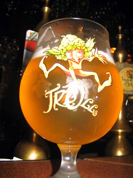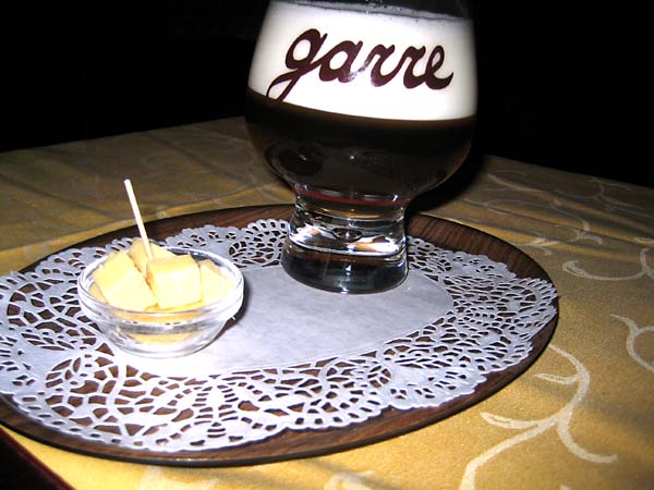 Their special of the house, a hoppy triple brewed for them by Brouwerij Van Steenberge. Love the glass. Would have liked one, but sadly, not for sale. Notice the little side of cheese served with every glass of beer.