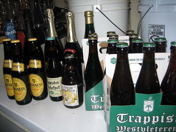 This is what it's all about. 6 bottles of Westy 12; 6 bottles of Westy Blonde; Bush Prestige; Rochefort 8; Guinness Foreign Extra Stout; t'Smisje Halloween; t'Smisje Cuvee 2005; Liefman's Jan van Gent; Drie Fonteinen Oude Kriek and Drie Fonteinen Vintage Oude Gueze (Brand new!). Sadly, one