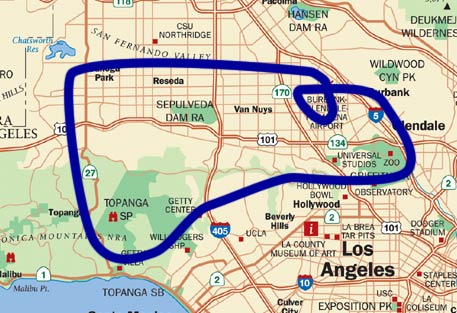This was our approximate flight path in 2004 as we flew south out of Burbank, looped back over the airport for a low altitude flyby. From there we preceded down